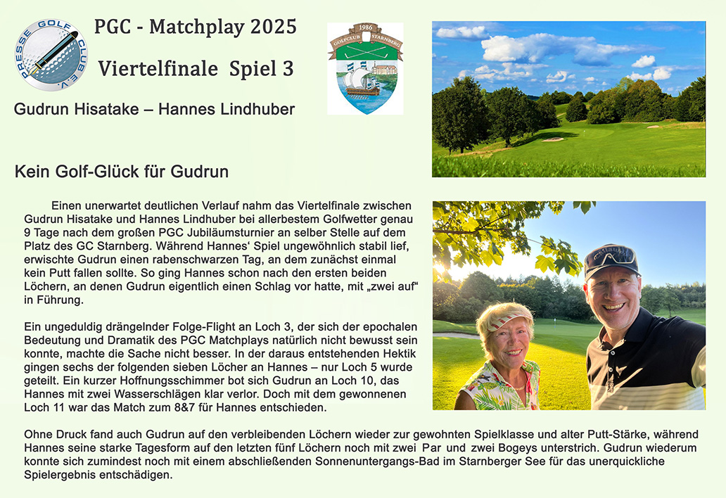 Lieber „Golfplatz Tutzing“ um Geschäftsführer Dr. Dankmar Zinke, lieber Gennaro mit Deinem herausragenden Gastro-Team: Tausend Dank für einen der schönsten Golftage, den ich als ausgesprochen verwöhnter Golfjournalist in meiner nun bald 30jährigen Karriere erleben durfte. Lieber Peter von Oppen, danke, dass Du es den Pressegolfern ermöglichst hast, bei diesem großartigen Event dabei sein zu können. Ich werde sicher beim nächsten Mal wieder dabei sein. – Herb Steffe –